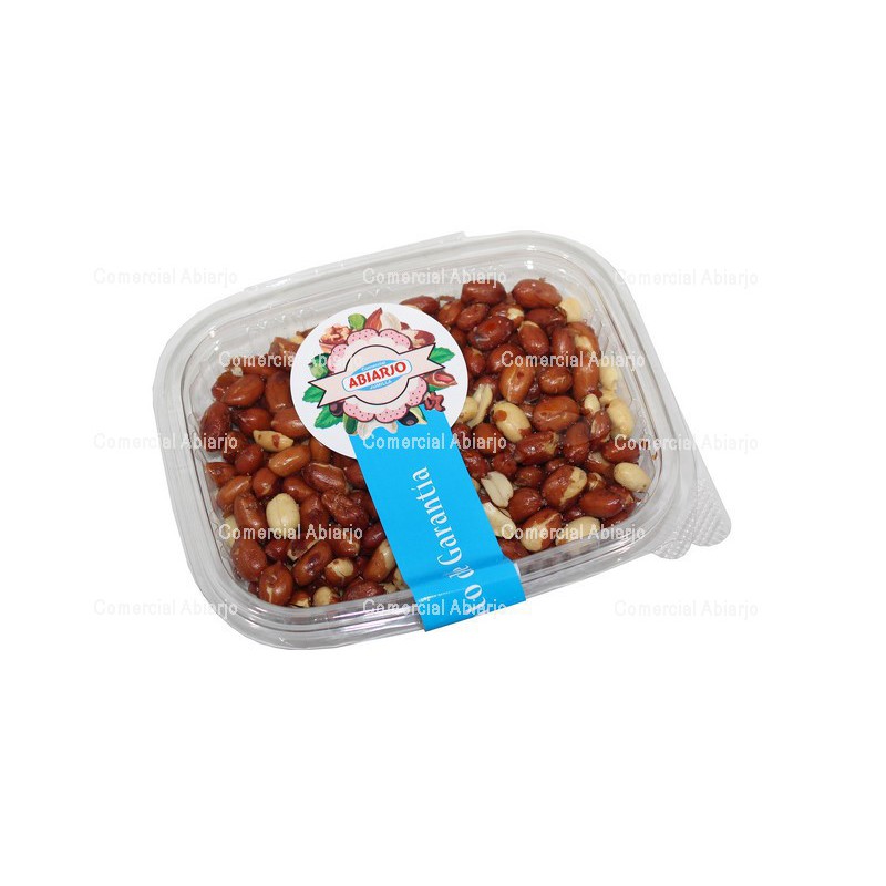 Tarrina de 140 grs. Cacahuete frito con piel en aceite de girasol.